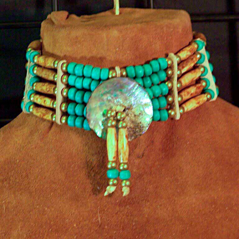 Item # C-695 ………Size: 14 1/2 in. in length.   This eye-catching Bone Choker was made with these materials :