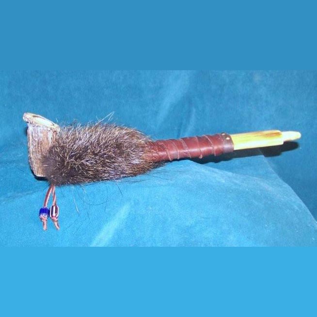 (1½”W x 2¾”H) and polished wood pipe stem with elkhide