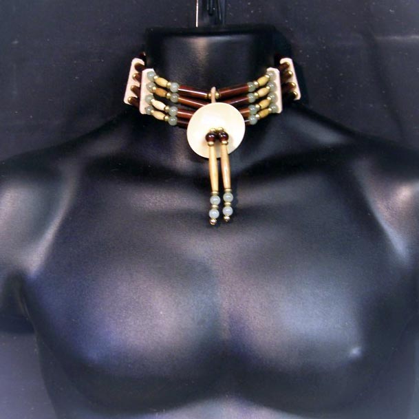 ITEM # C-516 SIZE: 16 inches in length….This Bone and Horn Choker features the beautiful semi-precious Avenurine Crystal Beads. The choker was made using these materials: <> Amber Horn Tubes <> Antiqued Bone Hairpipe <> Brass Beads <> Shell Concho <> Leather Spacers <> Amber Horn Beads <> Smoke Color Deerskin and Aventurine Beads.